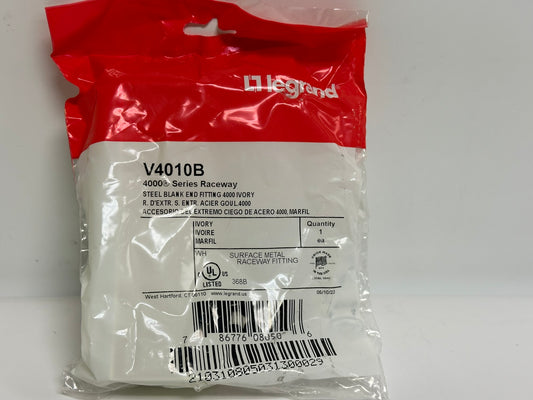 10 PK Wiremold (V4010B) 1-1/4" Ivory Steel Multiple Channel Raceway 4000 Series Blank End Fitting