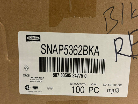 100 PK Hubbell SNAP5362BKA 20A 125V Duplex Receptacle – SNAPConnect, Black