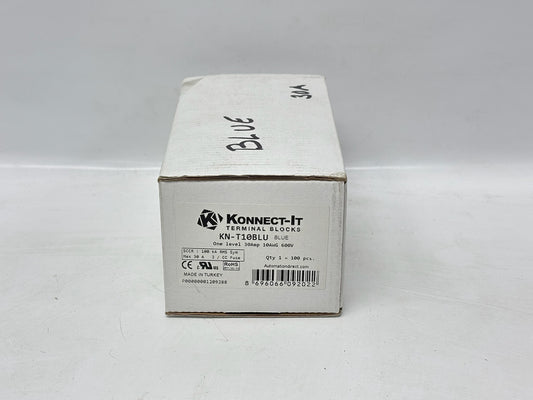 100PK Konnect‑It KN‑T10BLU Single‑Level DIN‑Rail Terminal Block, 26‑10 AWG, Blue