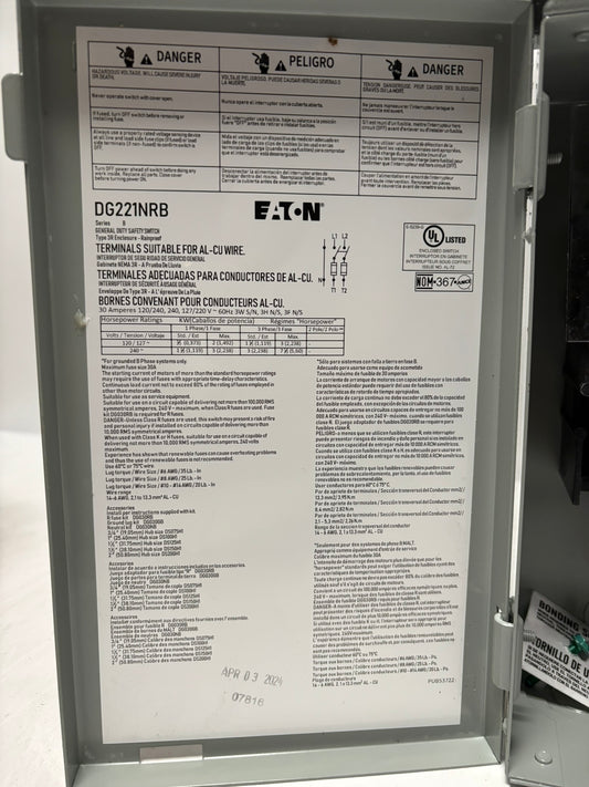 No Box Eaton DG222NRB Gerneral Duty Safety Switch 60A-240V