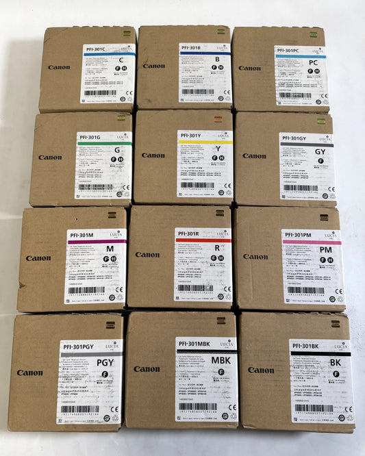 12 OEM Canon iPF8000,iPF9000,iPF9110 PFI-301 C,B,PC,G,Y,GY,M,R,PM,PGY,MBK,BK Ink