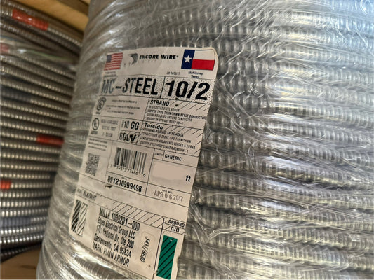 1500' ft Steel MC-Cable 10/2 Strand Copper- Black, White Conductors (1500')