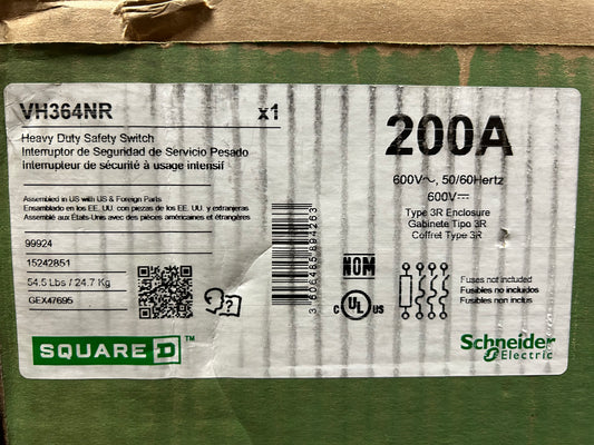 SquareD VH364NR Heavy Duty Safety Switch 200A 600V 50/60Hertz Type 3R