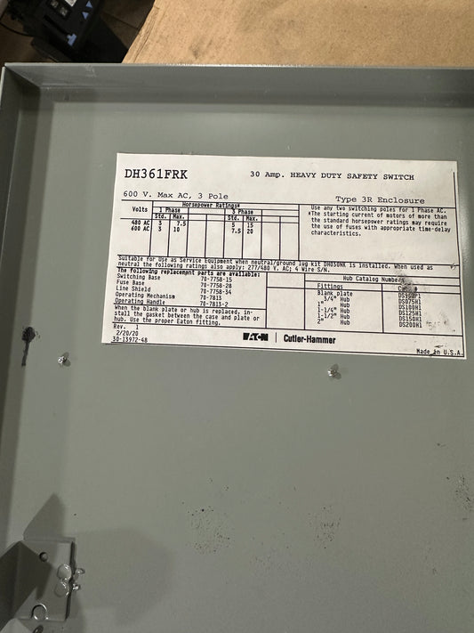 Sold outUSED Eaton fuse breaker DH361FRK