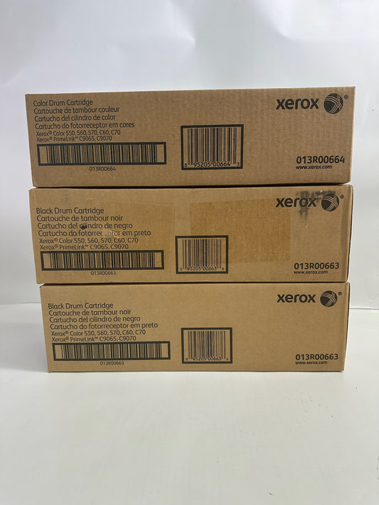 3 Genuine Xerox Color 550,560,570,C60,C70 Drum cartridges 013R00663,013R00664