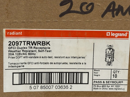 10 PK Legrand 2097TRWRBK 20A Tamper-Resistant Self-Test GFCI Outlet, Black