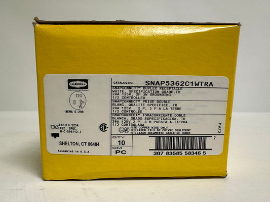 10 PK Hubbell SNAP5362WA 20A 125V Duplex Receptacle, White, SNAPConnect®