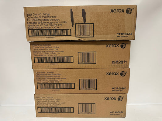 4 OEM Xerox C550,560,570,C60,C70 Drums 013R00663, 013R00664 (1 Black, 3 Color)