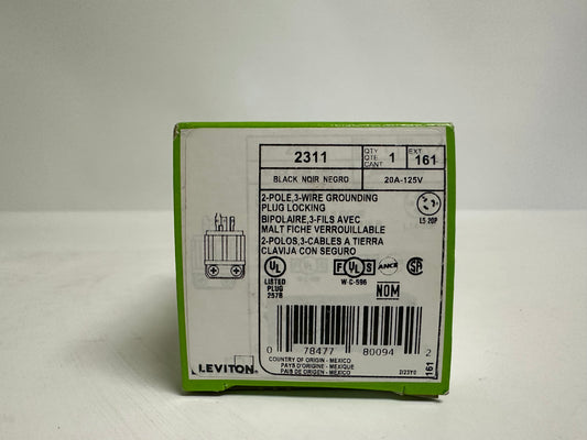 4 PK Leviton (2311) 2 Pole, 3 Wire, Grounding, Locking Plug, 20A-125V, Black