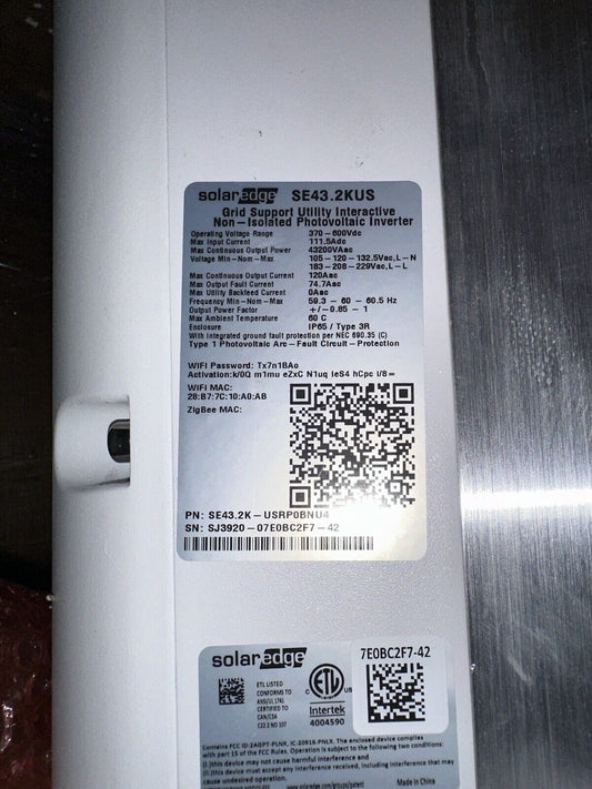 New Open Box SOLAREDGE Inverter SE43.2KUS SE43.2K-USRP0BNU4