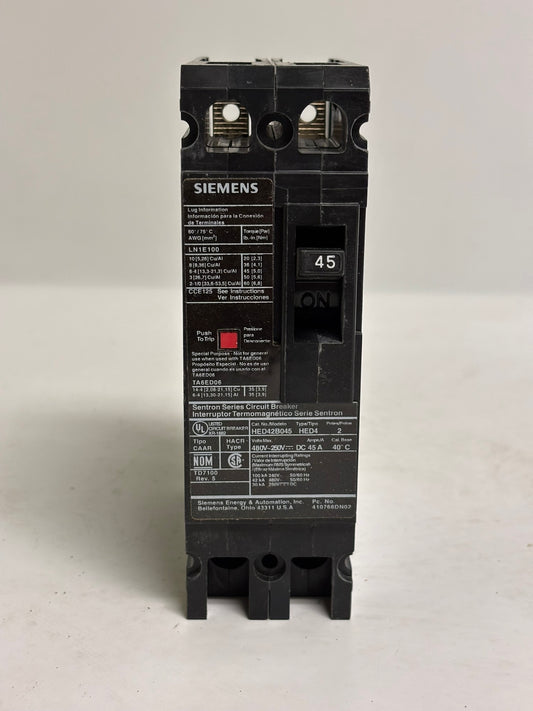 Siemens HED42B045 Molded Case Circuit Breaker, 2p, 45A, 480 VAC, 50/60HZ