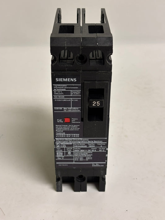 Siemens HED42B025 Sentron Molded Case Circuit Breaker, 2p, 25A, 480 VAC, 42kA @ 480V