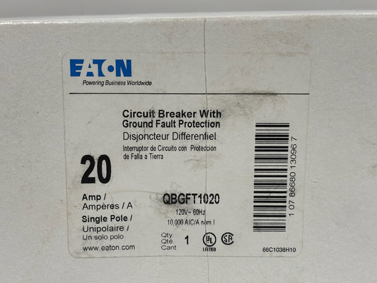 New 2 PK Eaton QBGFT1020 Circuit Breaker With Ground Fault Protection