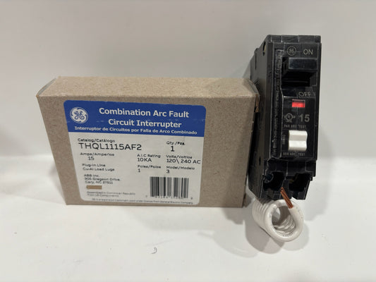 New 2 PC GE THQL1115AF2 Arc Fault (AFCI) Circuit Breaker - 15 Amp