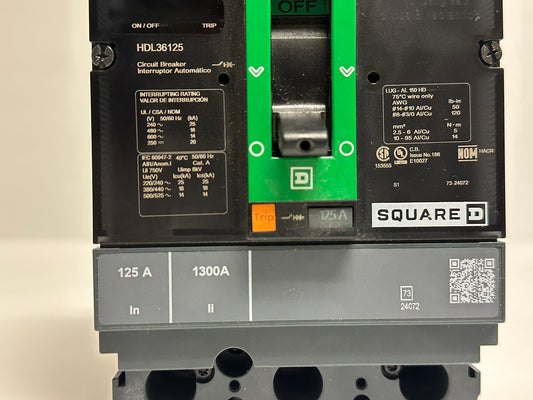 New Square D HDL36125 125A 3-Pole 600V Molded Case Circuit Breaker