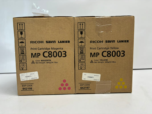 2 Genuine Ricoh IMC6500,IMC8000,MPC6503,MPC8003 MY Toners 842197, 842198