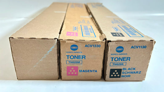 3 OEM Konica Minolta bizhub C450,C451,C651 TN626 CMK Toners AVC1430,1330,1130