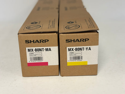 2 OEM Sharp MX-7081, MX-8081 Magenta and Yellow Toners MX-80NT-MA, MX-80NT-YA