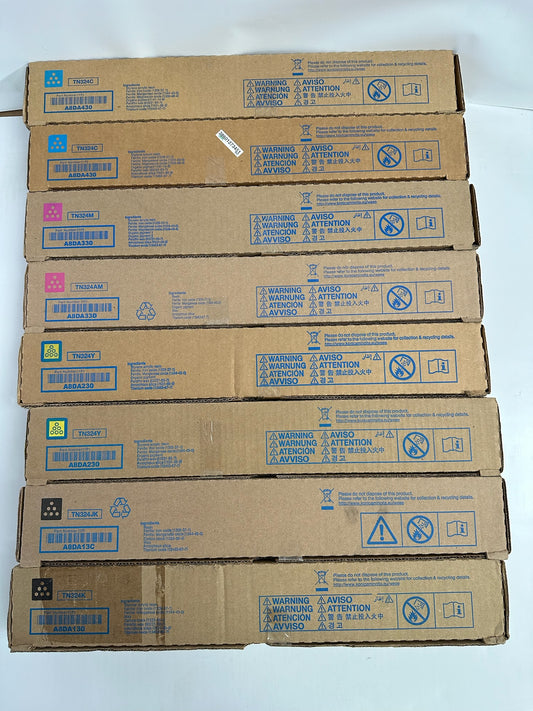 8 New Genuine Konica Minolta Bizhub C258,C308,C368 CCMMYYKK Toners TN324