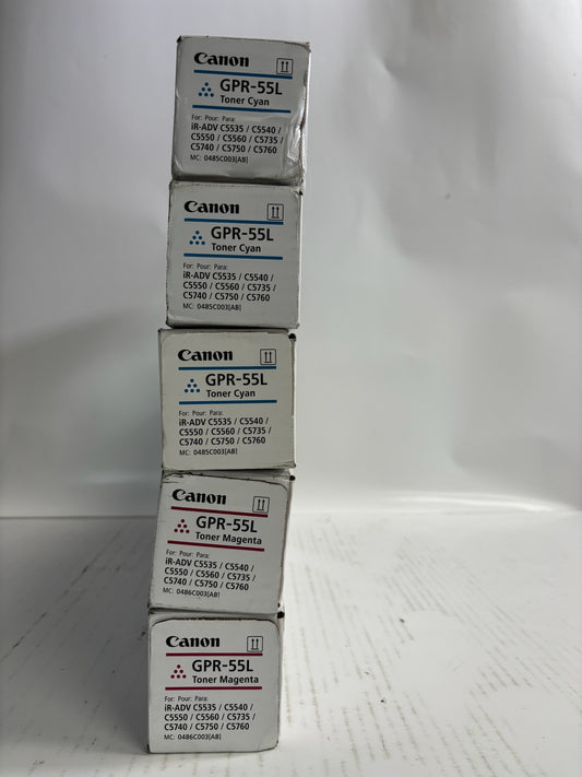 5 Genuine Canon iR ADV C5535i,C5535i II CCCMM Toners GPR-55L(No Yellow or Black)