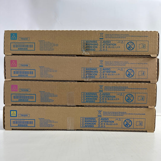 4 New Genuine Konica Minolta Bizhub C258,C308 CMMY Toners TN324 (NO Black)