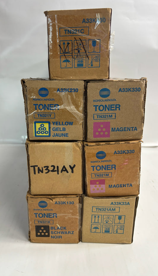 7 Genuine Konica BH C224,C284,C364,C364e TN321 CMMMYYYK Toners (AM, AY)