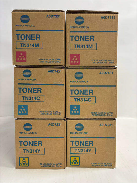 6 New Genuine Konica bizhub C353, C353P CCMMYY Toners TN314 (No Black)