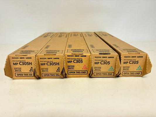 5 OEM Ricoh Aficio MP C305, C305H CCMKK Toners 842122, 842121, 842119