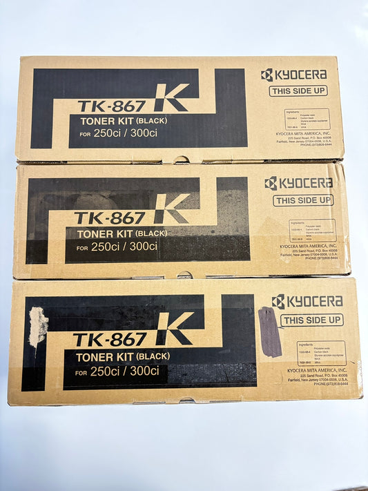 3 OEM Kyocera 250ci, 300ci TK-867 Black Toner 1T02JZ0US0 Same Day Shipping!