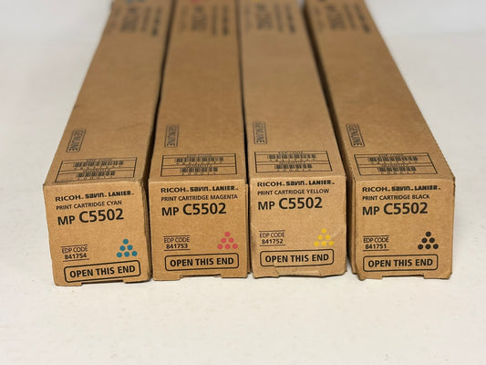 4 Genuine Ricoh Aficio MPC4502,C5502 CMYK Toners 841751,841752,841753,841754