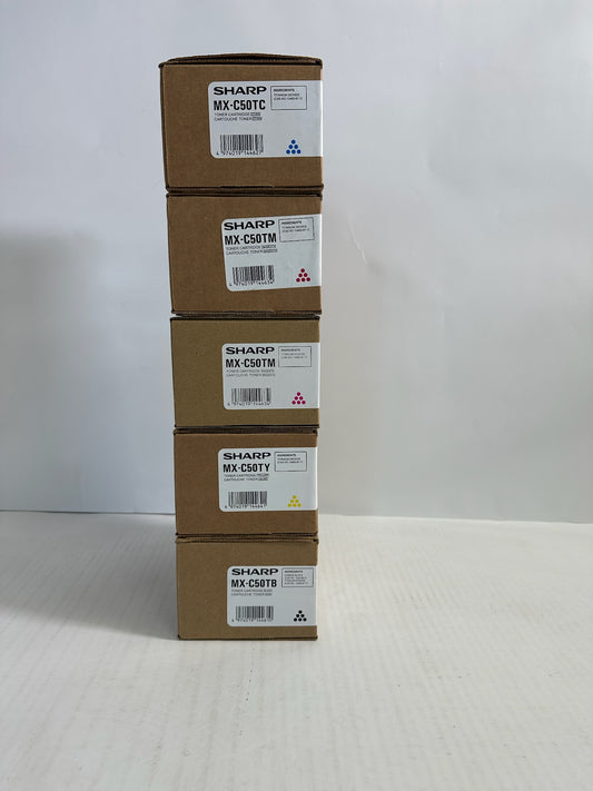 5 New OEM Sharp MX-C407F, MX-C507F CMMYK Toners MX-C50T, MXC50T