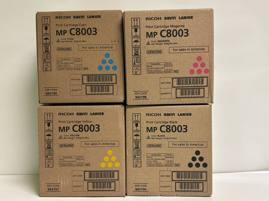 4 Genuine Ricoh MP C8003,C6503,C8000 CMYK Toners 842196,842197,842198,842199