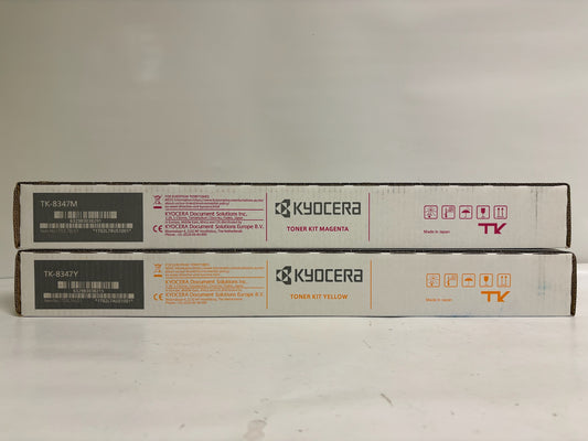 2 New OEM Kyocera TASKalfa 2552ci,2553ci Magenta & Yellow Toners TK-8347