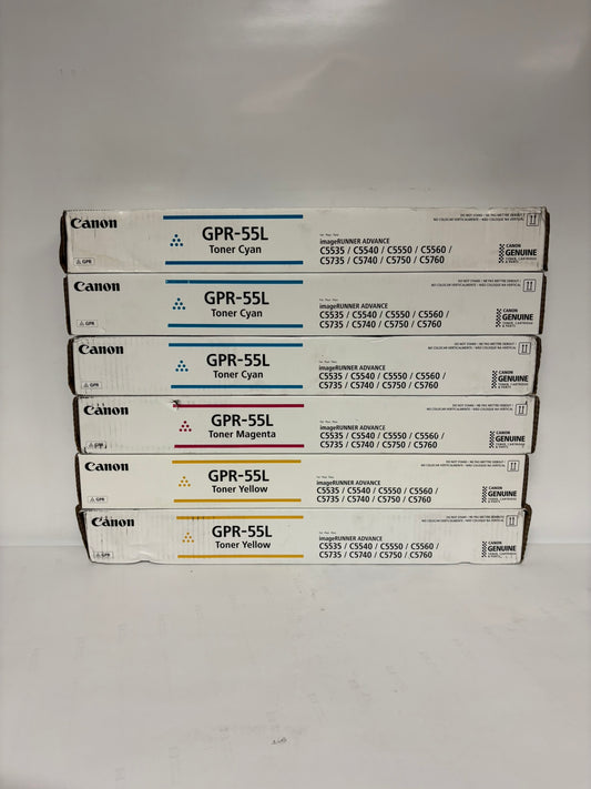 6 OEM Canon IR C5535,C5540,C5550,C5560 GPR-55L CCCMYY Toners (No Black)