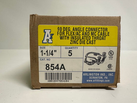 5 PK Arlington (854A) 11/4" 90° Angle Connector, Insulated Throat, Zinc Die Cast
