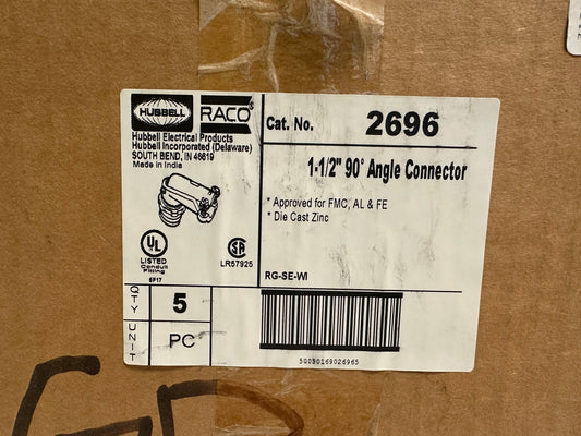 5 PK Raco (2696) 1 1/2" 90° Angle Connector, Squeeze Flex, Die-Cast Zinc