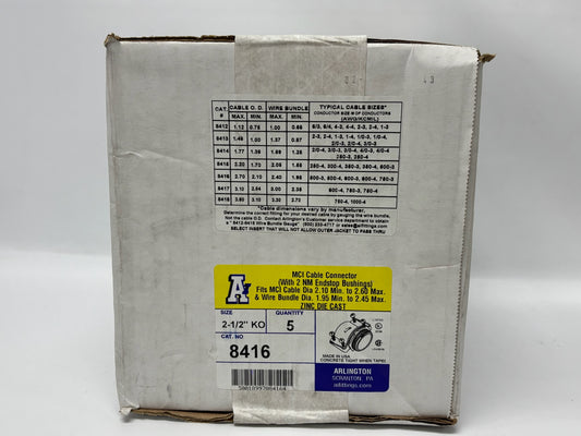 5 PK Arlington 8416 2-1/2" MCI Cable Connector Zinc Die-Cast Multi-Cable Fitting