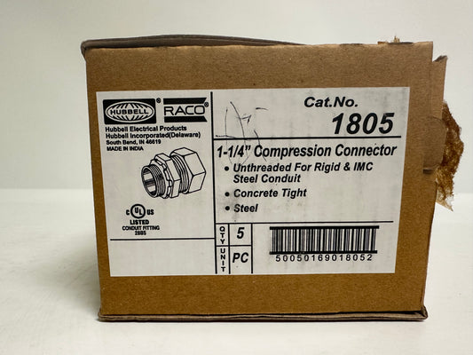 10 PK Raco (2905) 1-1/4" Steel Compression EMT Connector, Corrosion Resistant