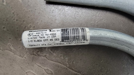 Wheatland Picoma 3" 45° EMT Electrical Elbow Conduit (LL94679), NW-4971