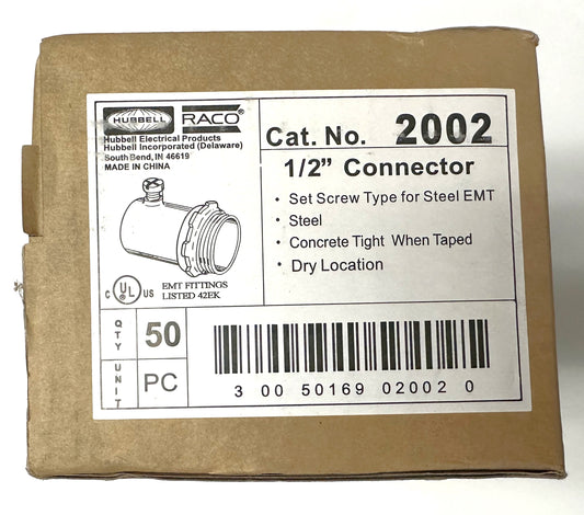 2 Pck Hubbel Raco 50 Piece (2002) 1/2" EMT Set-Screw Connector, 100 Pieces Total