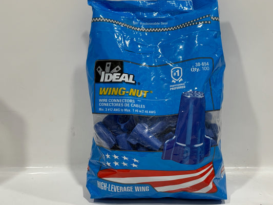 200 PK IDEAL 30-654 Blue Wing‑Nut Wire Connector, 14–6 AWG