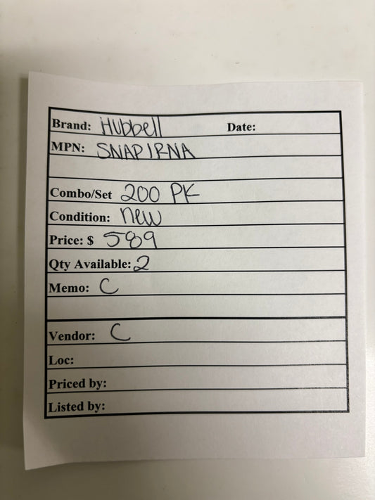 200 PK Hubbell SNAP1RNA – 20A Right-Angle SNAPConnect Pigtailed Receptacle Connector