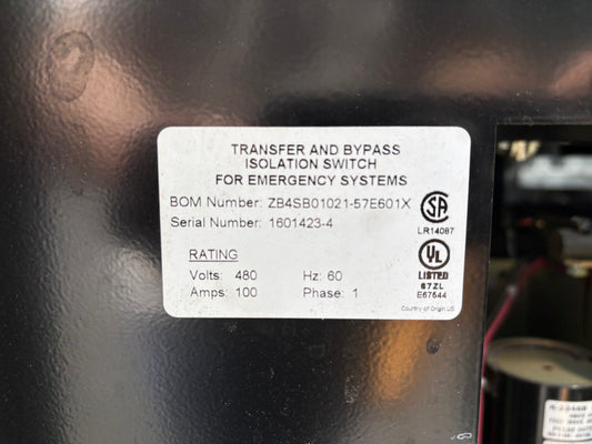 GE Zenith Controls 100amp Transfer Switch Cat# ZB4sb0121-57e601x 1 phase 480V