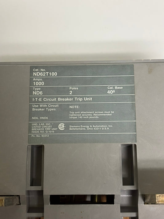 Siemens ND62T100 Sentron MCCB Trip Unit Only, 2P, 1000A, 600V