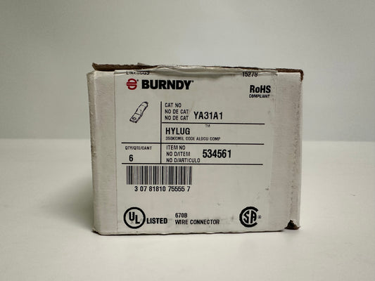 6 PK Burndy (YA31A1) 350 kcmil, AL, 1 Hole, 1/2" Stud, AL9CU Brown Color