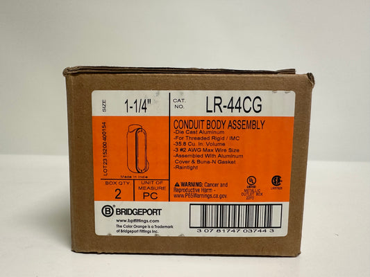 4 PK Bridgeport (LR-44CG) 1 1/4" LR-Type Conduit Body W/Cover & Gasket