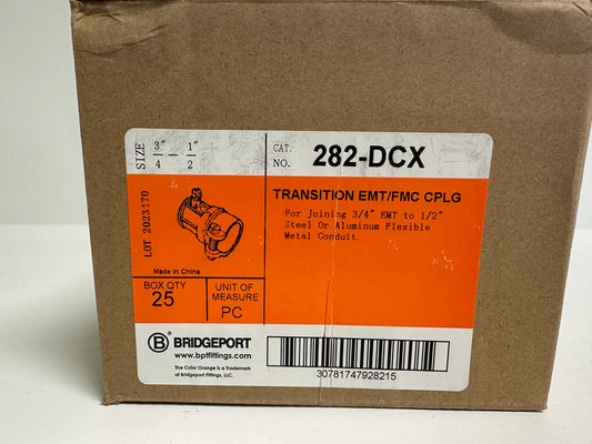 25PK Bridgeport (282-DCX) 3/4-1/2" Transition EMT/FMC CPLG, Set Screw