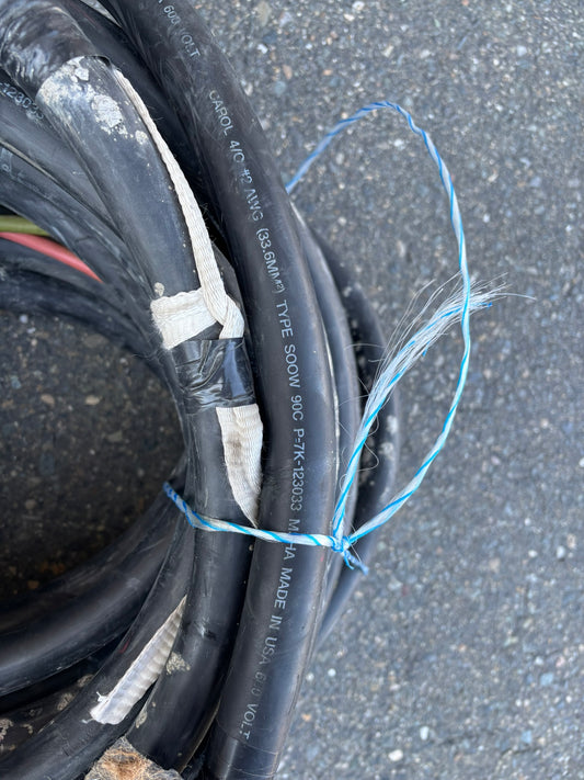85 FT- SOOW Portable Cord 4 Conductors, 2 AWG, Black/Green/Red/White Wire