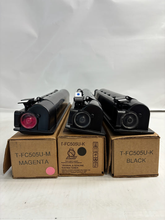 8 OEM Toshiba E2505AC,3005AC CCCMYYKK Toners T-FC505U (Mag/Blk: open with tab)
