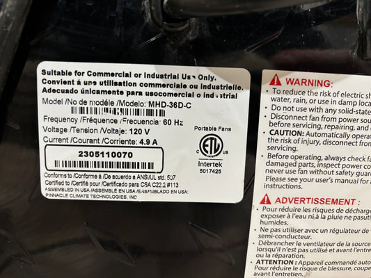 Master Industrial MHD-36D-C 120V High Capacity 36" Direct Drive Barrel Fan
